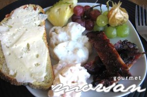 potatisallad, coleslaw, färsk frukt… det är bara att frossa! Å så