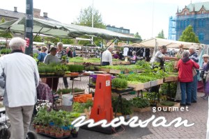 försäljning. Blommor, plantor- och kryddstånden är helt