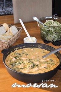 lägg i tärningar av lax koka i 1-2 min lägg i cream fresh,