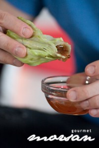 det med köttfärsen. Doppa bladet och köttfärsen i sweet chili sås.