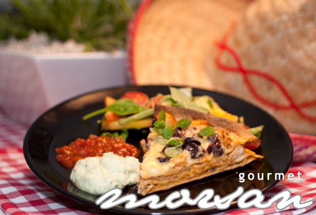 Vi serverade med salsa, guacamole och en blandad sallad till.