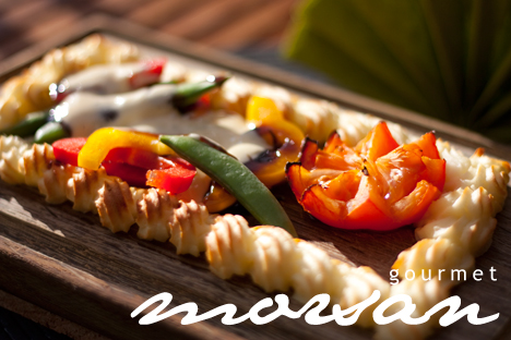 Börja med att starta grillen, så det blir fin glöd. När du spritsat moset och lagt på en tomathalva på plankan, kan du sätta in den i ugnen på 225 grader. låt den stå inne tills den fått fin färg. Du kan köra flera plankor i ugnen samtidigt om du använder dig av varmluft. Under tiden som plankorna är i ugnen, strimlas paprika och balsamico- och basilika glazen kokas ihop. När plankan är fint gyllenbrun tas den ut, och i mitten lägger man på den strimlade paprikan och sockerärtorna. Ringla balsamico- och basilikaglazen och en klick beaniesås. Lägg den grillade ryggbiffen ovanpå grönsakerna, och ringla ytterligare lite av de två olika såserna. Sedan är det bara att servera… Smaklig spis!