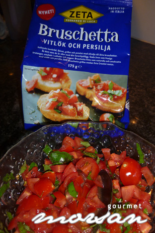 Gokväll på er alla underbara läsare! Både nya som gamla. Jag har förstått att det tittat in flera nya läsare, vilket är fantastiskt roligt! Det har tyvärr varit lite dålig uppdatering de sista dagarna, men jag lovar jag ska skärpa mig! Ibland vill inte timmarna riktigt räcka till. Tror det är ett ganska bekant fenomen för många av oss! Men jag har flera mat- och bakrecept som ligger på hög för att testas, åh jag hoppas givetivs att det bli så goda, så jag kan dela med mig av dessa till er! Här kommer ett tips på en nyhet i hyllan bland kexen, nämligen Zetas Bruschetta med smak av vitlök och persilja. Ljuvliga!Superfina till lite tomathack med basilika! Världens enklaste tilltugg så här på fredagskvällen!