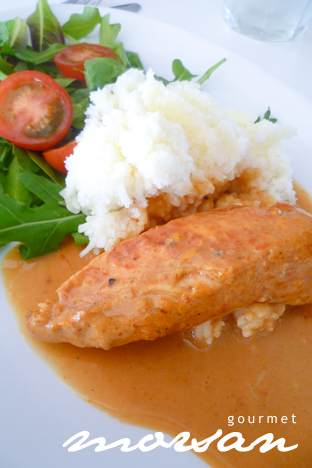 Rör ihop blandningen, salt, svartpeppar, curry, fyra kryddor, chilisås. Bred blandningen över kycklingen, och låt den stå och dra sig i några timmar i kylen. Ställ in formen i ugnen på 200°C och tillaga den ugnen i ca 25-30 min, eller tills den är färdig. Slå över 3 dl grädde över kycklingen, och låt den åka in i ugnen ytterligare 10 minuter.