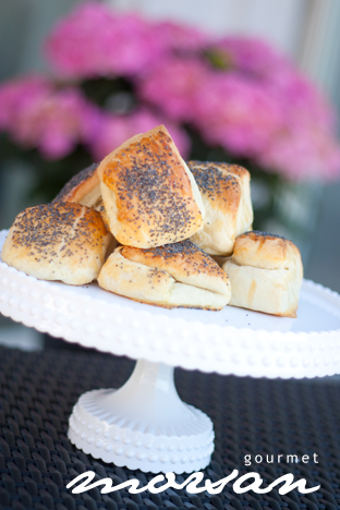 Då har helgen gått, och här har vi avlöst varandra med ännu en magsjuka! Allihopa åkte dit, inte ens mannen här hemma klarade sig. Han som tidigare haft ett järnstarkt imunförsvar, fick denna gången se sig besegrad. Fy sjutton säger jag bara! Det är verkligen ingen höjdare… Själv skulle jag varit i Göteborg på ett Bloggforum med Milk och Trendenser.se som arrangerades på Clarion Post Hotel. Snacka om att bli snuvad på konfekten! Inte alls bitter ;) Men jag hoppas innerligt att det blir fler gånger, för vilket startfält till föreläsare: Blondinbella, UnderbaraClara, Karin Adelsköld, Monika Ahlberg och Elin Nyström. Det kan ju bara bli hur bra som helst! Eftersom jag själv inte repat mig så nämnvärt, fick det bli till att stanna hemma. Så för att trösta mig lite, slängdes jag ihop en sats med Birkes. Vad smakar inte bättre än nybakta frallor, när man inte har särskilt mycket sug efter mat?  Gör det här gobitarna nästa helg när ni ska ha lite lyxfrulle, de är fantastiskt goda! Ska absolut ätas på stört… så smör och osten smälter så där gott ;)