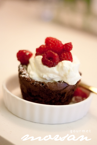 Kladdkaka med grädde och hallon!