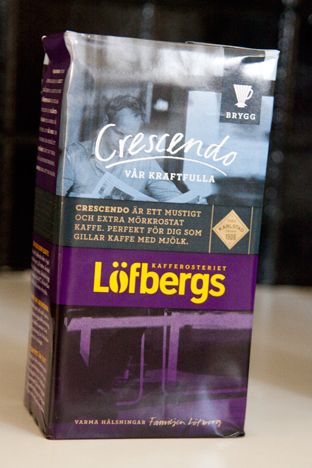 Iblanda kan jag gå en hel förmiddag utan kaffe, men huvudvärken gör sig lätt påmind efter lunch om jag inte får kaffe…och då behöver jag det på studs. Andra dagar kan man knappast vakna förrän kaffesuget sätter in. Det är lite konstigt allt! Men häromdagen när jag var å handlade, stötte jag på det här kaffet. Crescendo från Löfbergs Lila. Jag blev helt enkelt nyfiken på hur detta kaffe smakade eftersom det passade sån kaffe-drickare-som-jag-som dricker-med-mjölk! Åh det var gott! Ganska mycket sting, så för den som inte dricker med mjölk vet i sjutton… Då är det starkt!