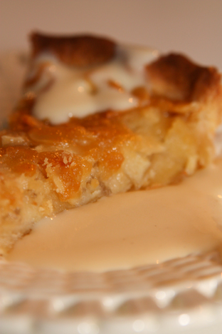 Tosca: Blanda alla ingredienserna till smeten i en kastrull och sjud under omrörning tills smeten tjocknat. Bre den över äpplena. Grädda pajen mitt i ugnen tills toscan fått fin färg, ca 15 minuter. Servera med vaniljsås.