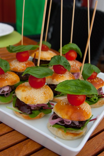 Det har blivit en hel del mat också, även fast det tyvärr inte har kommit upp här på bloggen. Ska försöka dela med mig så mycket jag bara kan. Här får ni i allafall lite inspiration iform av små miniburgare gjorda på högrevsfärs. Det bästa när man ska göra smaskiga burgare. Blanda bara färsen med lite vatten, mycket salt och peppar. Forma till små miniburgare och lägg på grillen! Smakens! Strax innan burgarna är färdiga på grillen, pensla med BBQ sauce som ni kan köpa färdig i affären. Tycker ”Sweet baby Ray´s Barbecue sauce är otroligt god!