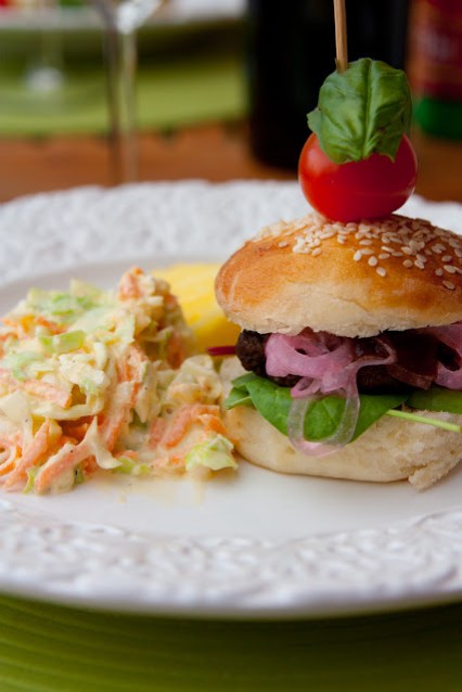 Finns tid, så baka egna små hamburgerbröd. (Återkommer imorgon med receptet på dessa) Festligt och så otroligt gott! Servera sedan med sallad, picklad rödlök och tomat eller vad som faller er in!