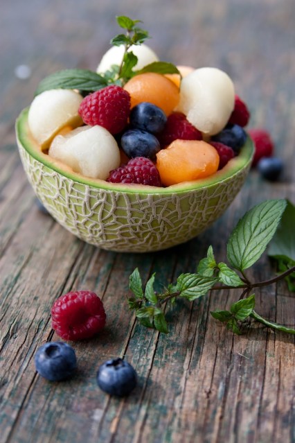 Visste ni att meloner tillhör gurksläktet? Jag hade inte en susning om det. Inget jag heller hade gissat på om någon frågat mig. Man lär så länge man lever 🙂 Nu råder det ju melonfrossa och de är bra pris på melon i våra butiker, så behöver ni tips inför helgen på dessert eller ett otroligt gott mellanmål kan det här kanske va nåt? Blanda olika sorters melon med olika sorters bär. Vill man lyxa toppar man med en kula glass, så har man en härlig, enkelt och god dessert att mumsa på. Trevlig att serva i en urgröpt melonhalva som man lätt gör med ett kuljärn, så får man fina melonkulor att lägga i.