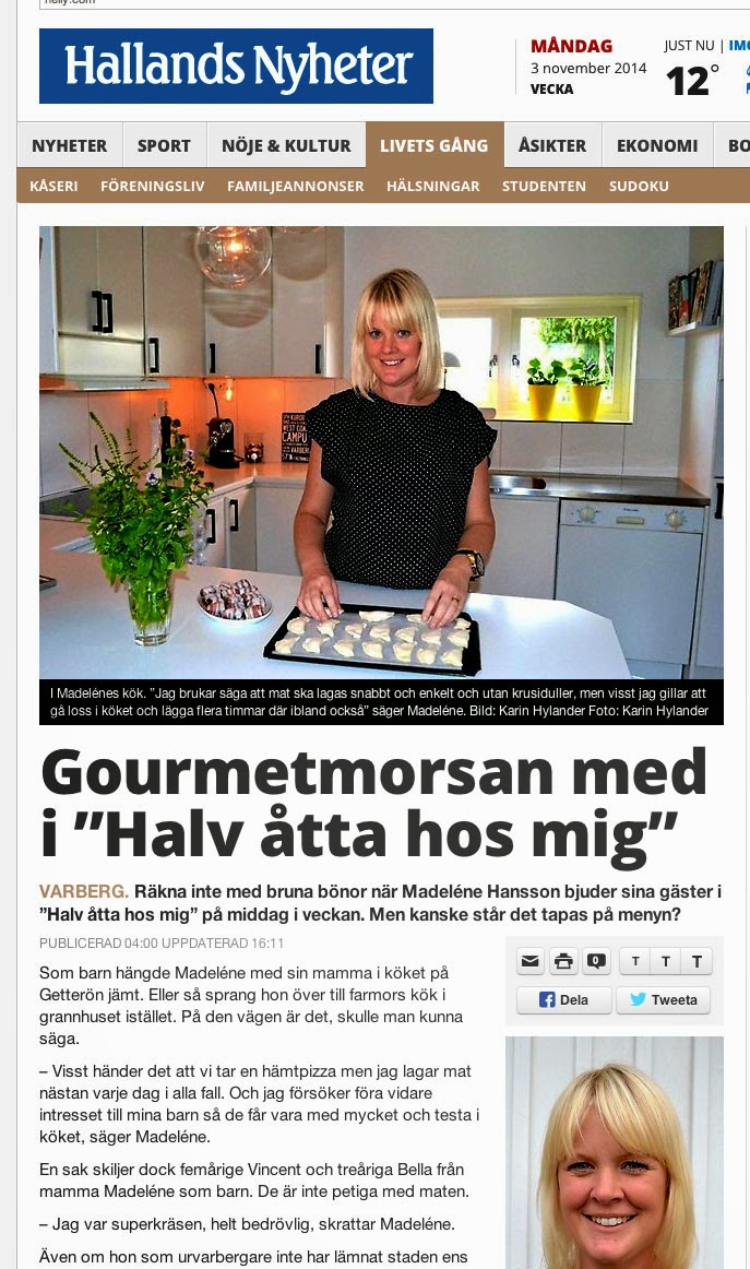 Denna veckan är inte vilken vecka som helst. Det har kommit till veckan då ”Halv åtta hos mig” visas från Varberg och jag är en av deltagarna. Jösses, hur kunde jag hamna här? Eftersom jag har underbara vänner som länge tyckt att jag skulle vara med, tog en av dem tag i saken och skickade in mig och när produktionsbolaget ringde upp sa jag blankt nej! Men jag gick att övertalas och nu är vi här! Ska villigt erkänna att jag var lite smått nervös hur allt klipps ihop. Men nervositeten la sig snabbt, nu när väl första avsnittet visats 😉