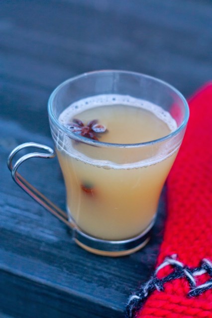 Det varit fixar dagar här hemma. Det är inte bara spänd förväntan på tomten, utan även på ett badkar som ska få ta plats i hemmet. Har saknat ett sedan vi flyttade hit för si sådär 8 år sedan… men den som väntar på nåt gott… 🙂 Men innan karet är installerat, blir det till att värma sig med lite annat 😉 Eftersom det har blivit lite piff utomhus med enris och kransar till dörren och lite ljusslingor som ska på plats, har det även blivit lite frusna fingrar och tår. Vad passar inte bättre än varm äppeldryck som värmer både inombords och kalla händer. Ett supergott alternativ till varm choklad eller glögg, inte så sött heller. Sedan kan man ju tillsätta lite annat gott som höjer kroppstemperaturen, som calvados till exempel 🙂