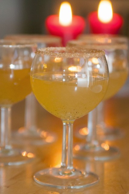 Fukta kanten på ett martiniglas eller annat glas med citronklyftan. Blanda socker och kanel på ett fat och doppa kanten försiktigt runtom. Förberedes gärna en stund innan så det hinner stelna.