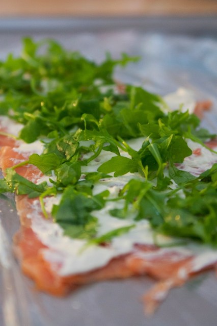 Rulla ihop och vira plastfolie runt och låt vila i kylen. Sedan rulla sesamfrön runt och skär i bitar.