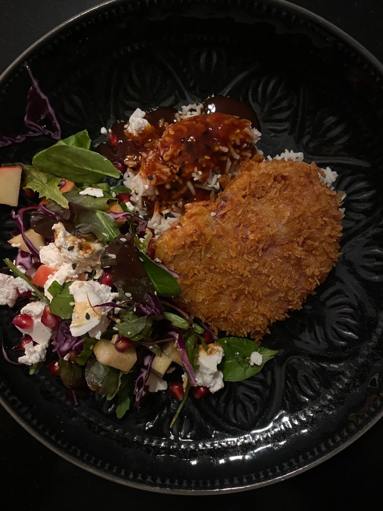 När man har en liten bit julskinka kvar, då blir det en variant av Tonkutsu. Friterad julskinka med lite julig sallad, ris och sås. Barnen blev överförtjusta, en rätt som de ger högsta betyg 🙂 Testa du med. Om inte annat kan du ju göra den på kyckling, om du inte har julskinka kvar 😉