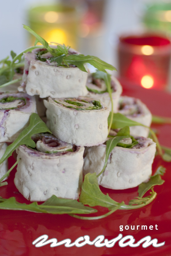 Gör gärna snittarna några timmar före servering så att smakerna fördelas. Rulla in dem i plastfolie och lägg dem i kylen. Skär rullarna i cirka 1 1/2-2 centimeter tjocka skivor.