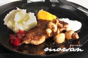 med potatis och kokta grönsaker.
