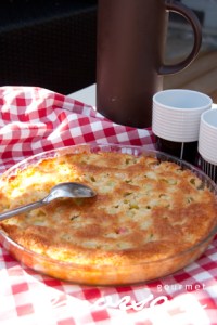 Fyll därefter formen med rabarber- och hallonfyllningen och grädda ytterligare 25 – 30 minuter.