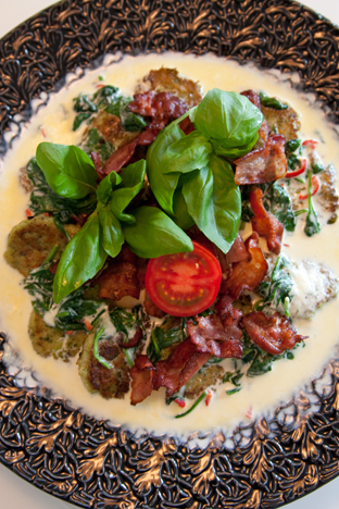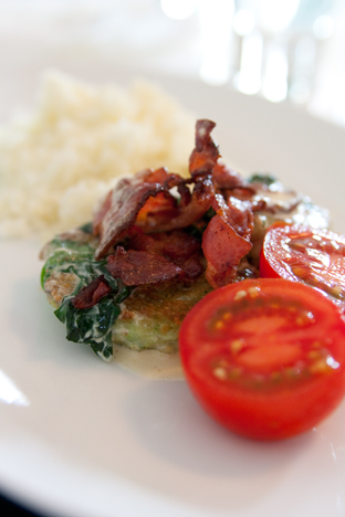 Fiskbiffar med grädde, basilika och spenat med touch av chili