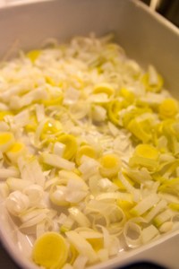 Dela kycklingfiléerna på mitten på längden. Stek dem i stekpanna och salta och peppra.