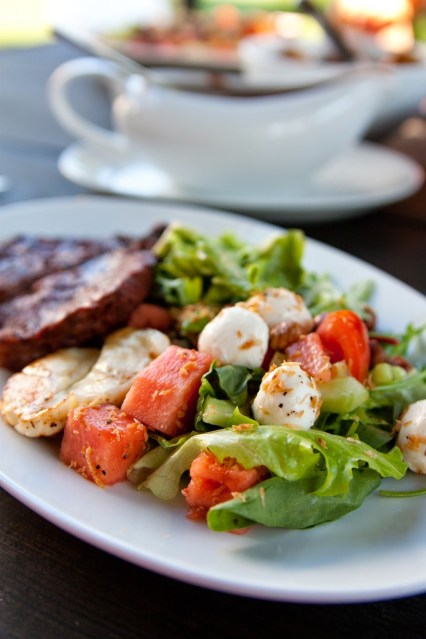 En köttbit på grillen, denna goda sallad sedan är middagen kirrad!