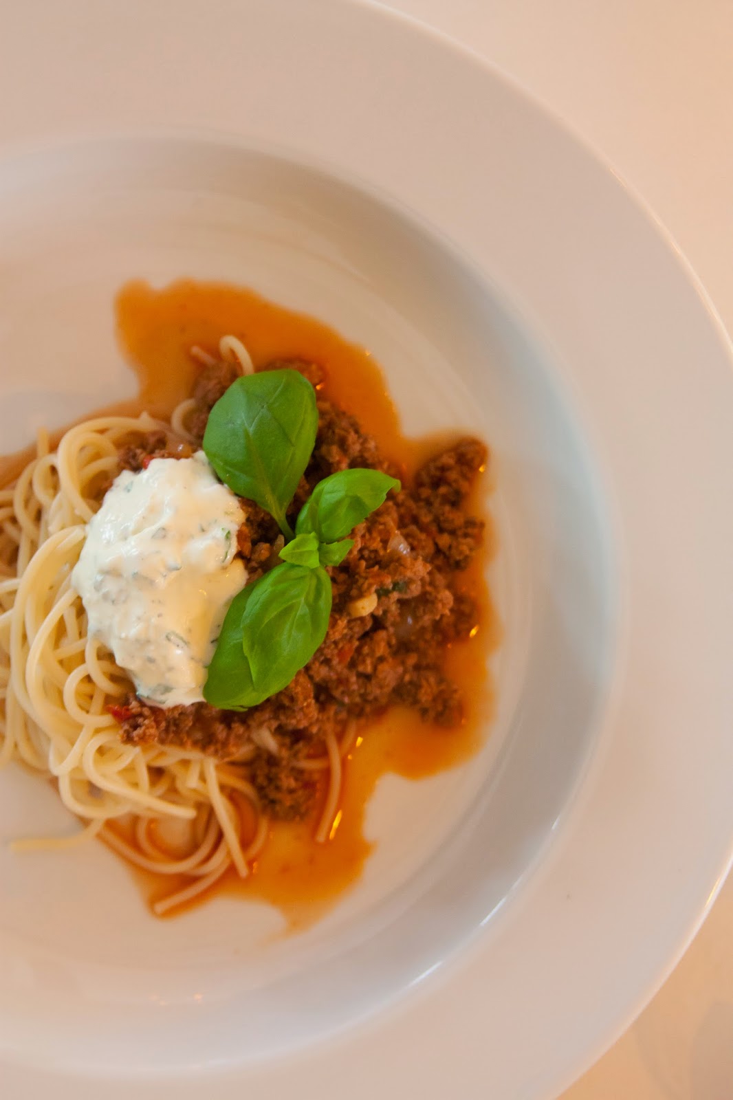 Toppa med burrantan. Dra några varv med pepparkvarnen.