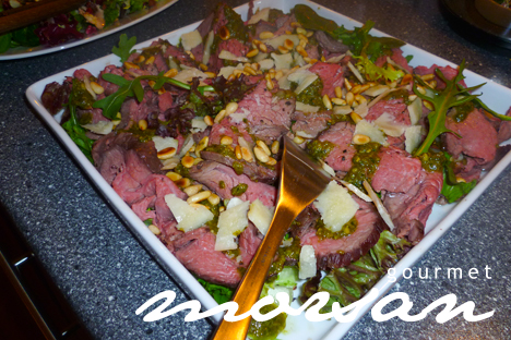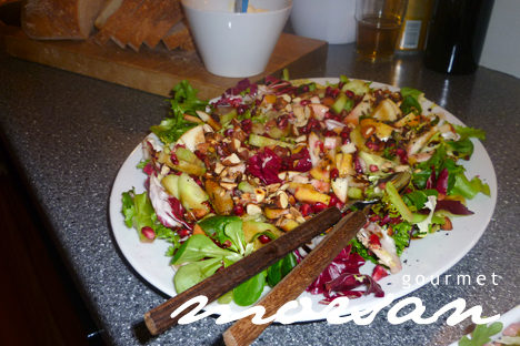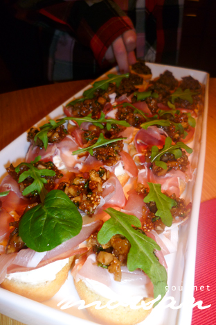 Igår var vi hembjudna till våra underbara vänner Chrille och Seide och deras 3 barn Vilmer, Alfred och Elsa. Det var såååå otroligt mysigt! De är verkligen några som fixar och trixar och bjuder alltid på underbart god mat och dryck! Till drinken som bestod av Absolut Orient Apple (smaksatt med äpple och ingefära) fick vi Seidies god fikoncrostini. Jag skulle nog kunna sätta i mig hela fatet, för jösses så goda det var. Sedan var det varmrätt med rostbiff med pesto, sallad och pinjenötter, och julig sallad med blandsallad, granatäpple, äpple och hackad mandel. Till detta krämigt god potatisgratäng. Som om detta inte var nog, skulle det toppas med julens pannacotta med kryddäpplen… behöver jag tala om att det var vansinnigt smarrigt