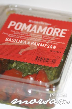 Blanda pastan med färdig pesto på burk och balsamvinägern.