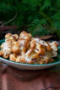 Börja med sockerkakan. Vispa smör och socker mjukt och smidigt. Tillsätt ett ägg i taget under vispning och slutligen mjölken. Blanda de torra ingredienserna och arbeta försiktigt ner dessa i smeten. Fördela smeten i ett tunt lager i formen.