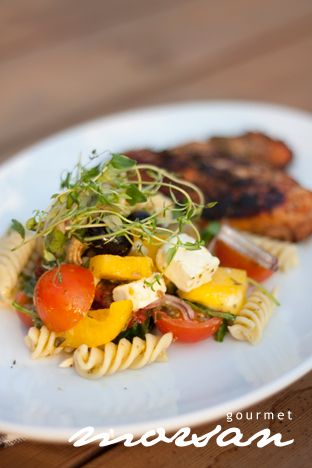 Grillen är tänd, och ute har det varit helt ljummet! Värmen och solen tycks hålla i sig, och man är ju bara så otroligt mycket piggare…Visst är det härligt? Denna onsdag var det givetvis pasta på menyn, och varför inte slå till på en otroligt enkel och god pastasallad till den saftiga kycklingfilén som fick besöka grillen. Denna pastasallad är nästan för bra för att vara sann… Kan göras till många personer, kan användas på buffé, kan serveras till både kött, kyckling och kallskuret, passar även för stranddagar och utflykter…och framförallt går snabbt att slänga ihop! Visst låter det bra?