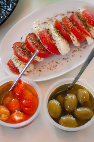 Klassisk rätt som tomat och mozzarella, å oliver i massor…