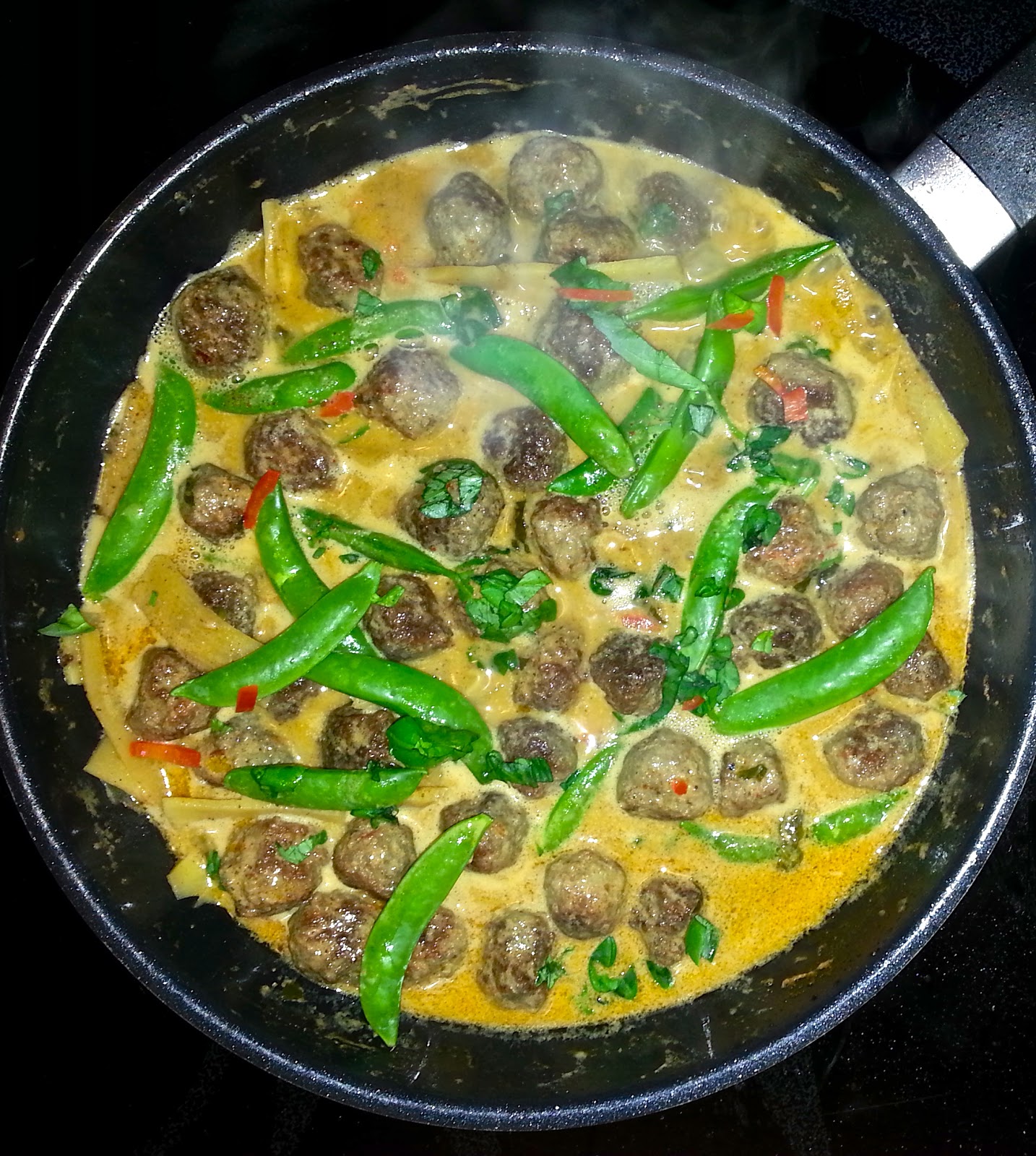 På bordet här hemma ikväll blev det köttbullar fast i ny tappning… thai inspirerande! Trots att smaklökarna efter förkylningen fortfarande tycks ligga i dvala, kommer denna rätten definitivt att tillagas flera gånger. Kul med lite annat konstaterade vi!  Test ni också!