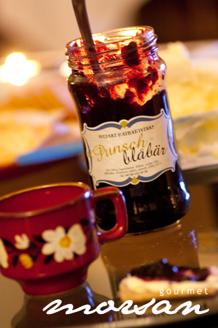 Alldeles krämig och mjuk, och blev bara goda ju längre den stod framme. Till osten och kex serverades en marmelad med punsch och blåbär, som var en ny spännande smakkombo för mig ![]()