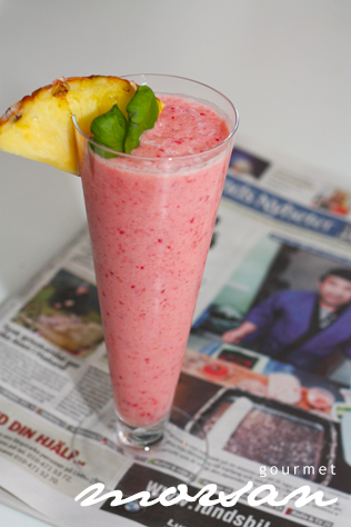Morgonen startade med en ljuvlig smoothie på ananas å hallon… Supergod