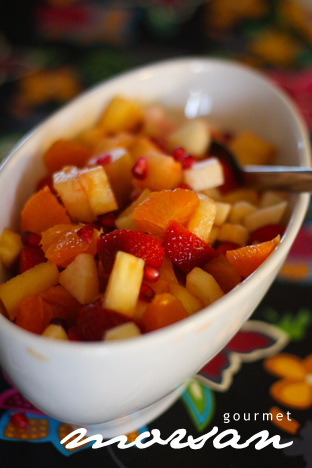 Ibland kan man ha mycket gott hemma i fruktväg. Ibland kanske inte fruktskålen ger några hurrarop precis…men man tager vad man haver! Idag blev fruktsallad med lyxig variation måste jag nog säga. Den bara blev så där extra extra god, för hemma fanns mandariner som var så saftiga, så saftiga, jordgubbar, ananas, äpple, banan och som ”grädde på moset”, granatäpple! Yammie!!!!