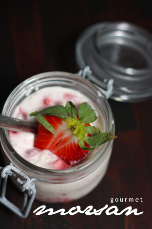 Men, men, den blev ju trots allt lite charmig ändå! Åh krämen blev förträffligt god… jag drömde mig bort några sekunder till en varm dag i juni, när grönskan är som bäst och jordgubbarna lyser röda i landen. Härligt! Nu längtar jag… Gör ni?