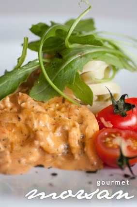 Servera med färsk pasta och toppa
