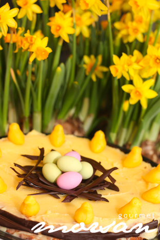 Bred med en slickepott ut pannacottan över kavringsbottnen. Var noga med att få den jämn. Ställ formen i kylskåp och låt stå i minst 2½ timme, gärna 4–5 timmar.