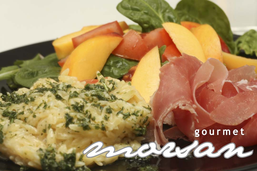 Seasamknäcke med pepparrotsost inlindat i parmaskinka