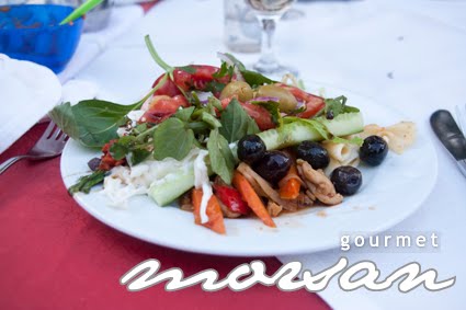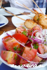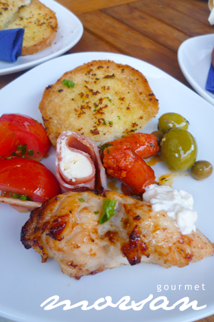 Fyllde tallriken med massa gott så som vitlöksbröd, oliver, Chorizokorv brässerad i vittvin, Parmaskinka inlindad i getostkräm, tomatsallad, kycklingspett, ostar, aoila och massa annat gott! Bara att frossa!