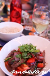 Thairätt på ryggbiff med cashewnötter, paprika och så oystersås. Stora portioner, så man går absolut inte hungrig därifrån!