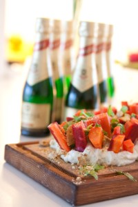 Morötter och andra krispiga grönsaker kan ju vara hur goda som helst att knappra på innan en middag. Men ibland kan det ju vara trevlig med lite nya inslag. Det fick jag tips på när jag för ett tag sedan var på ett event, och på borden stod det ett härligt fat med blanda färger på morötter toppat med lite grönt. Många sneglade och undrade om det verkligen var något vi skulle äta… men självklart! Å ack så gott det var… Nu hade jag inte turen med mig när jag skulle försöka mig på att göra detta tilltugg när det var dags för vinbrudarna att komma. Det fanns nämligen endast lila och original morötter i butiken. Men har man lite framförhållning går det absolut att beställa detta innan hos din grönsakshandlare. I vilket fall som helst fick det bli ett fat med lila och klassiska oranga morötter som fick lite extra krydda genom att de fick ett kok i lite ättika och strösocker. Ett dekorativt och gott tilltugg! Sedan blev det den nya paradrätten med inbakad fläskrulle med rosmarins, krossad potatis och dragonkräm. Ni hittar receptet här! Efterrätten blev en härlig vit chokladkräm med blanda frukt i olika lager, som verkligen smakade helt underbart! På tal om dessert, blev det just det som föll på vår lott inför cykelfesten. Så nu är det dessert-letande för Gourmetmorsan. Har ni något bra tips tas det tacksamt emot… Har en grej på lut, som jag faktiskt ska testa imorgon tänkte jag. Får se om det blir som jag tänkt mig 🙂 Återkommer med resultatet 🙂