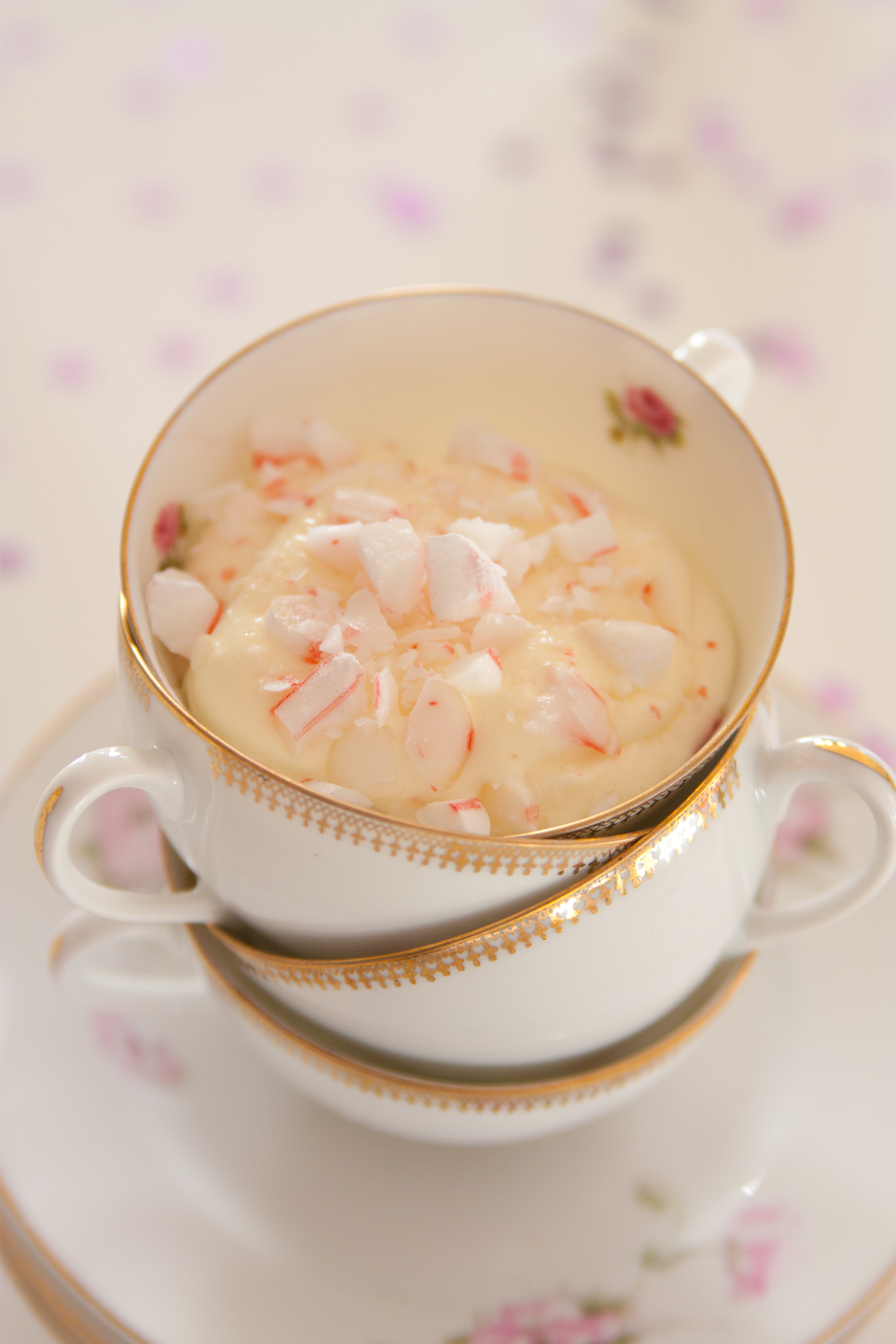 Smält chokladen i vattenbad eller i micro. Vispa grädden. Vispa upp ägget och tillsätt chokladen under kraftig omkörning, tillsätt kesellan och vänd till sist ner den vispade grädden. Häll upp i portionsformar och in i kylen, i minst 1 timma, gärna längre. Krossa polkagrisarna i mortel. Ganrera moussen med polkagrisarna och ev. lite citronmeliss vid servering.