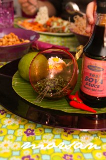 Igår var jag och ett antal matintresserade och matbloggare inbjudna till en Thaikväll med Santa Maria, och vi hade hur trevligt som helst! Vi lagade thaimat och åt så vi storknade… Här får ni ta del av kvällen i bilder! Jag måste verkligen ge beröm till Malin och Lisa på Santa Maria som hade gjort att den röda tråden lyste stark genom hela kvällen, med dukning, färger, råvaror, meny, och dryck. De hade verkligen gått in för att ge oss hela bilden av Thailändsk matkultur, och fått tag på Thailändska specialitéer, som vi svenskar kanske inte tycker smakar eller definitivt inte tycker luktar så gott, och då syftar jag på frukten Durian. Den är mycket populär i Thailand och konsistensen är lite krämig, lik avocado, och smaken är en blandning mellan övermogen banan, och lök. Den är inte tillåten att ta med sig på vissa platser i Thailand pga dess doft, så ni kan tänka er hur den luktade…. Urk! Men det var kul att få testa