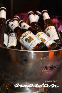 Fördrink: Sockerlag som kokats upp med vatten, socker, kafir lime blad, ingefära och chili. Mixa sockerlagsblandningen med mango som varit frusen i bitar. Häll upp i glas och fyll upp med mousserat vin typ. Cinzano Prosecco.