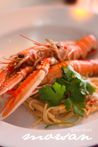 Lägg upp pastan på tallrik, och garnera med persilja och riven parmesan. Toppa med kräftorna.