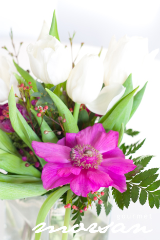 Dukningen gick i lila, rosa och vitt! Härligt med lite vårfärger, så här efter julen! Jag har ju en svärmor som är en hejjare på det där med blommor! Det är bara att ge fria händer, så vips har man nåt fint på borden!