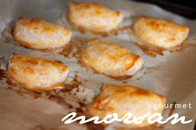 In i ugnen på 225°C tills de fått en gyllenbrun färg. Ta ut och låt svalna innan servering.